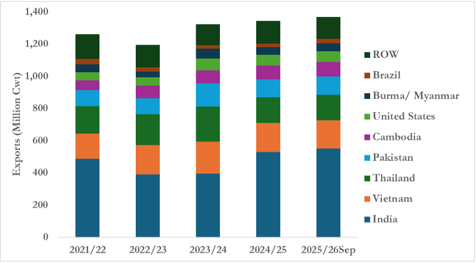 Figure 3. Milled Rice Exports (2021/22 – 2025/26Sept)