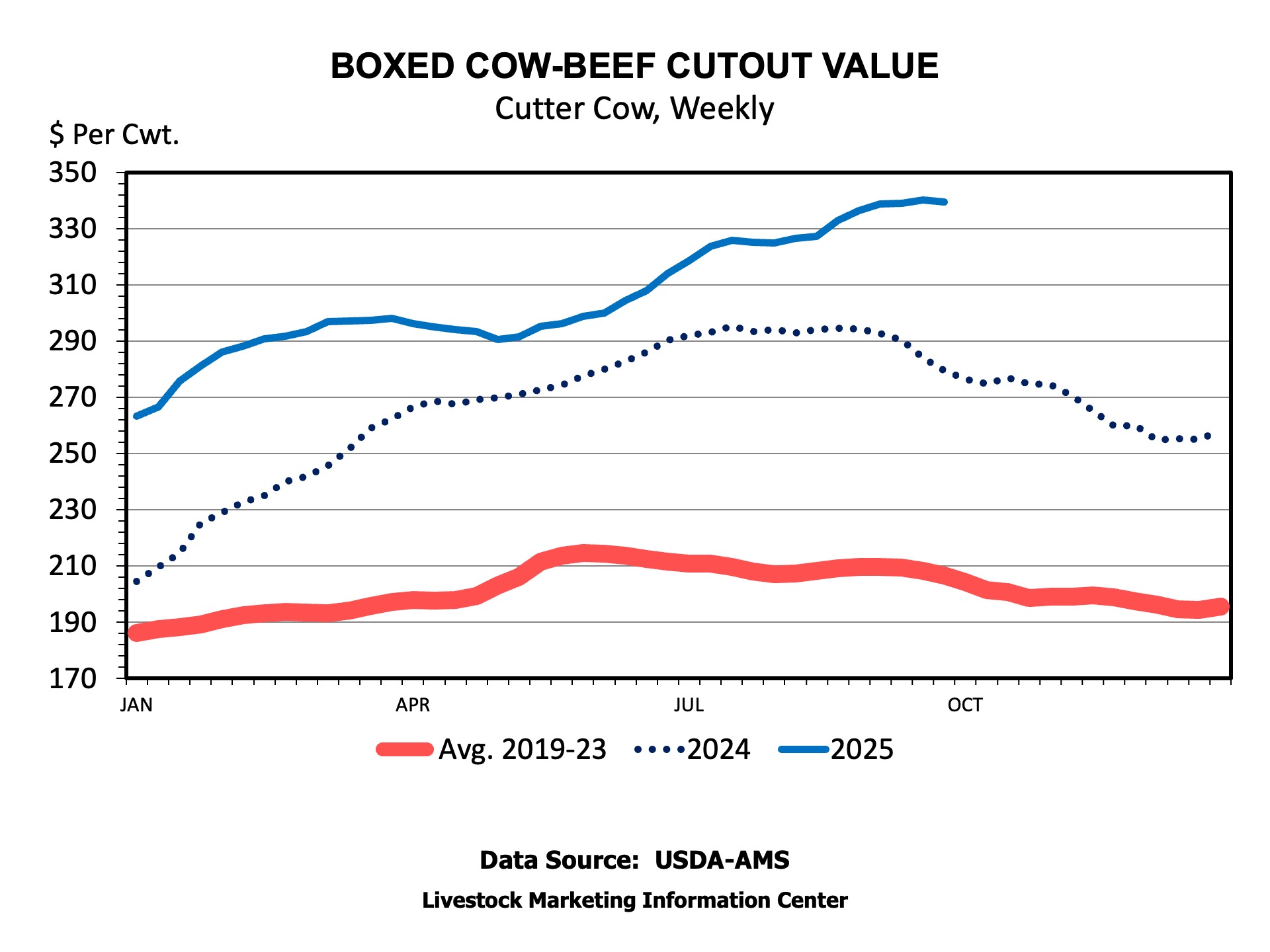 Cull cow prices typically decline this time of the year as beef and dairy cow culling ramp up and the beef market is fully past grilling season. Cow prices this Fall have shown just a little seasonal decline as tight beef supplies keep prices high.